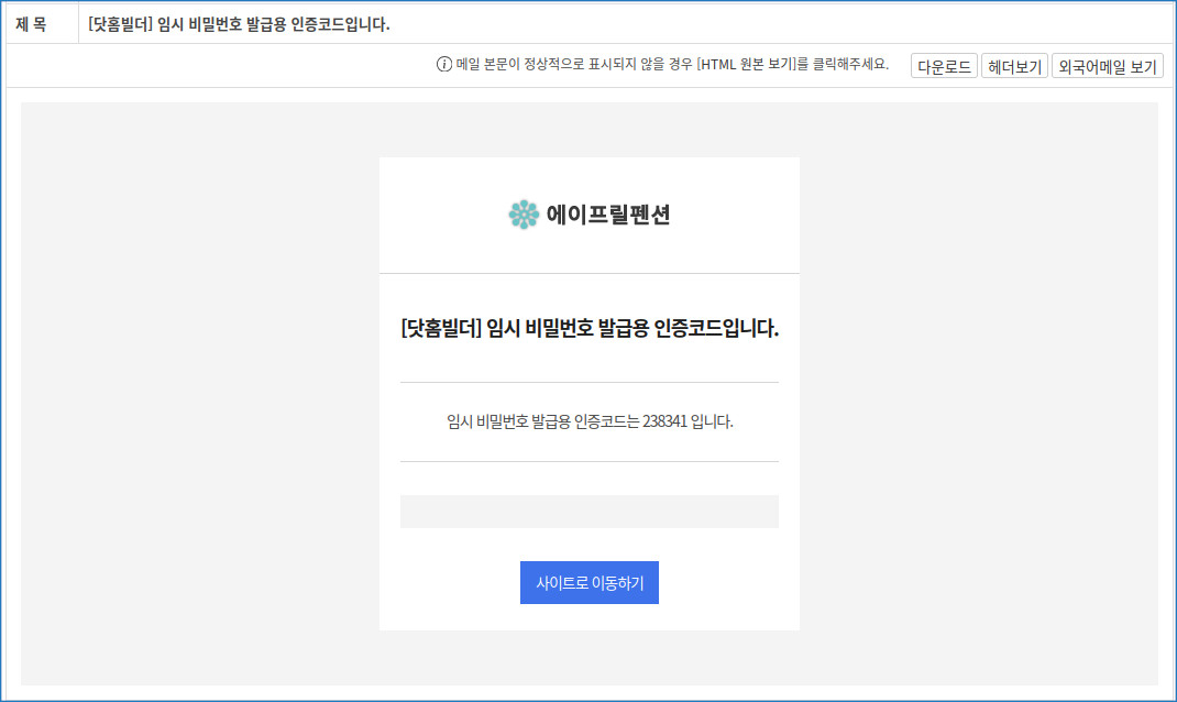 아이디와 이메일 정보가 맞다면 해당 이메일로 인증코드가 발급됩니다.