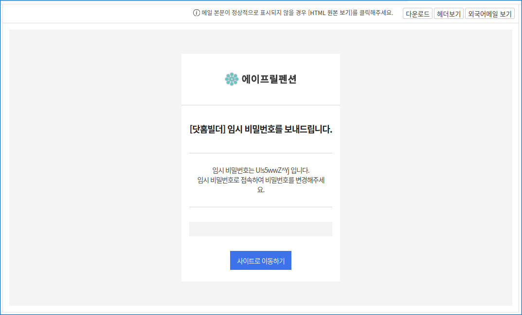 발급된 임시 비밀번호는 메일에서 확인하실 수 있습니다.