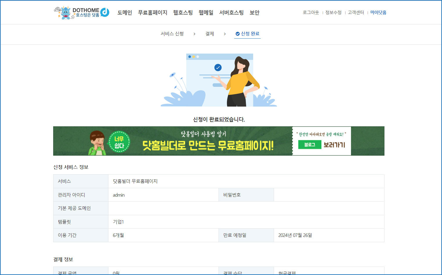 닷홈의 무료홈페이지 서비스를 이용하시면 홈페이지를 무료로 개설하실 수 있으며 광고배너 없이 사용하실 수 있습니다.