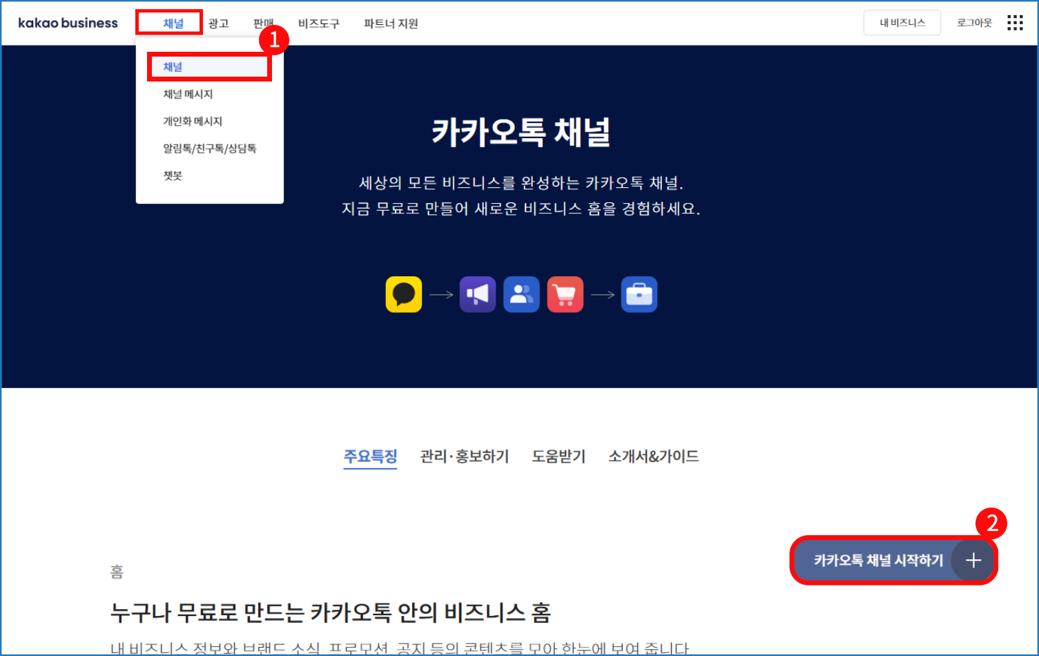[카카오 비즈니스 메인 페이지]