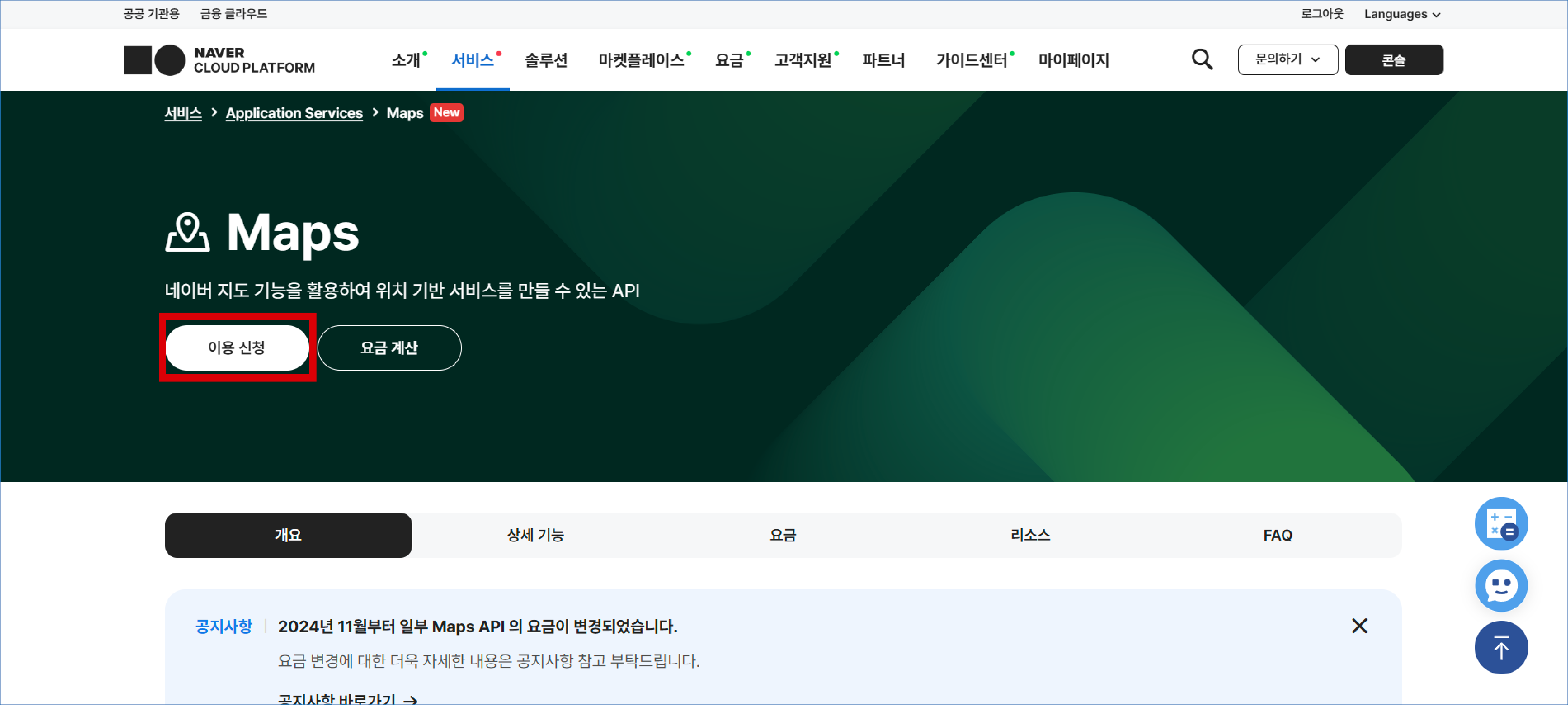 [네이버 클라우드 플랫폼 Maps API 메인 화면]