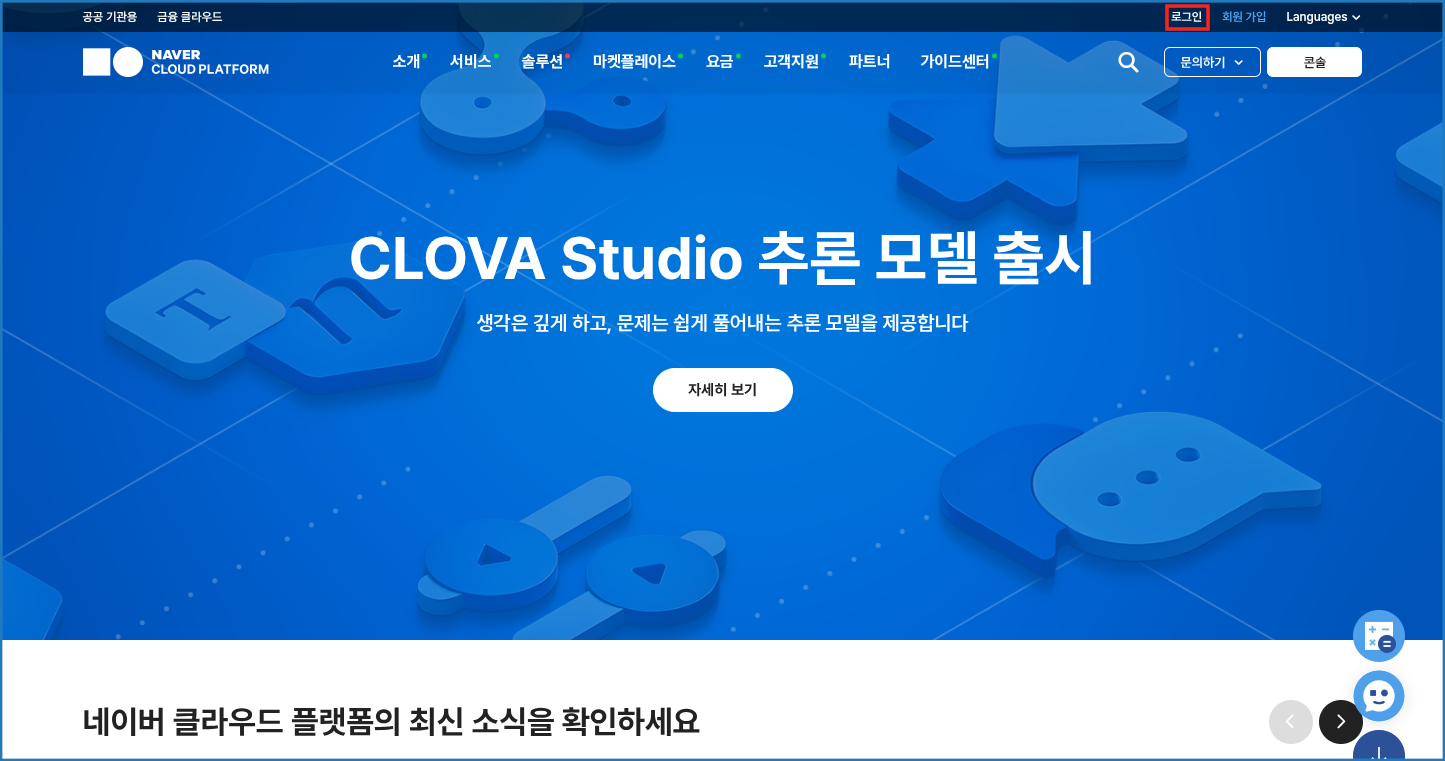 1. 네이버 클라우드 플랫폼 사이트로 이동하여 로그인 및 가입을 진행합니다.