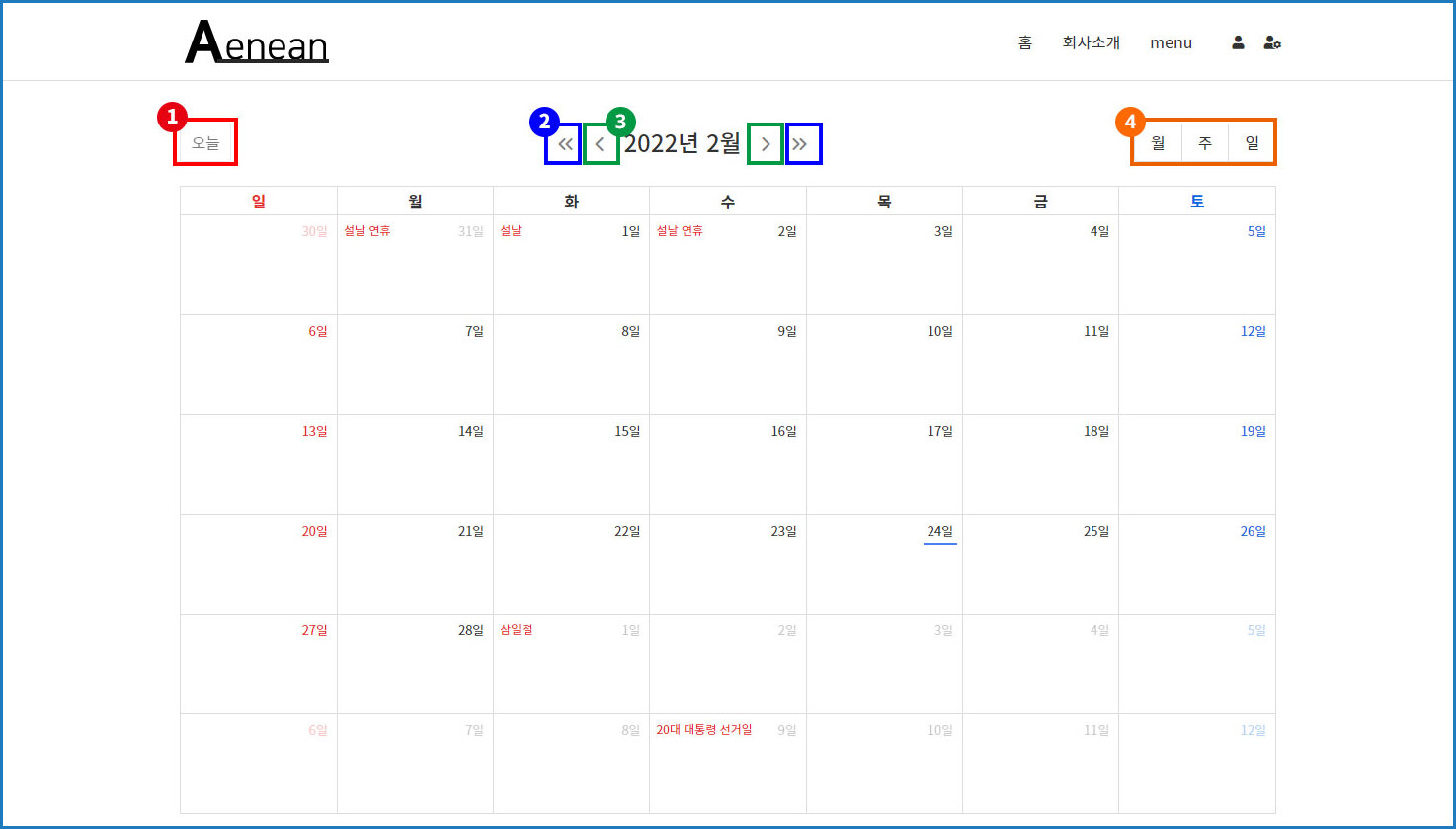 ④번 버튼을 통해 월별/주별/일별 단위로 달력을 볼 수 있습니다.