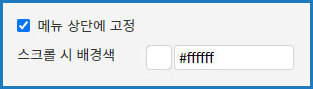 스크롤 시 배경색은 화면을 아래로 스크롤 했을 때의 메뉴 배경색을 설정합니다.