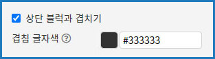 겹침 글자색은 메뉴와 상단 블럭이 겹쳐져 있을 때 메뉴의 글자색을 설정합니다.