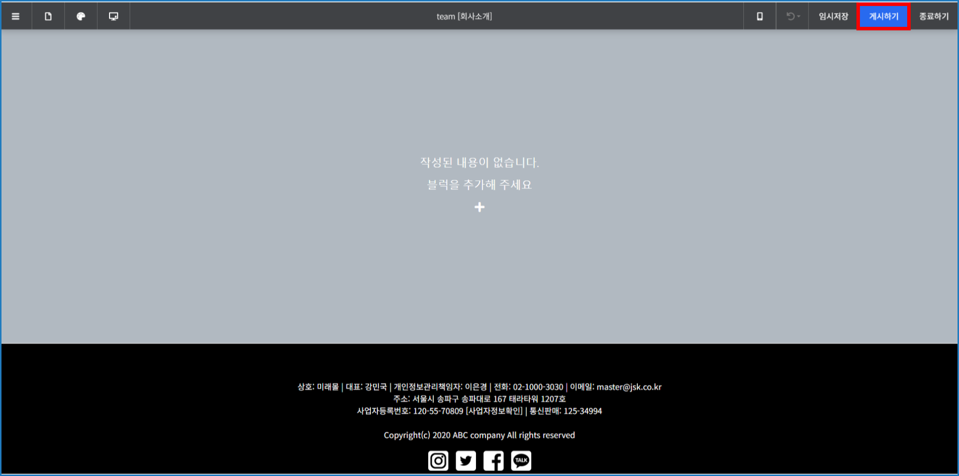 변경 후에는 반드시 [게시하기] 버튼을 눌러주어야 설정한 내용이 적용됩니다.