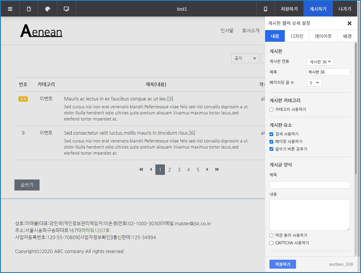 각 게시판 블럭의 설정 항목에 대해 알아보겠습니다.