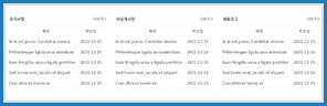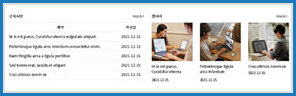 리스트형 2단 또는 3단, 블로그형 2단 또는 리스트형과 블로그형이 조합된 구성으로 제공하고 있습니다.