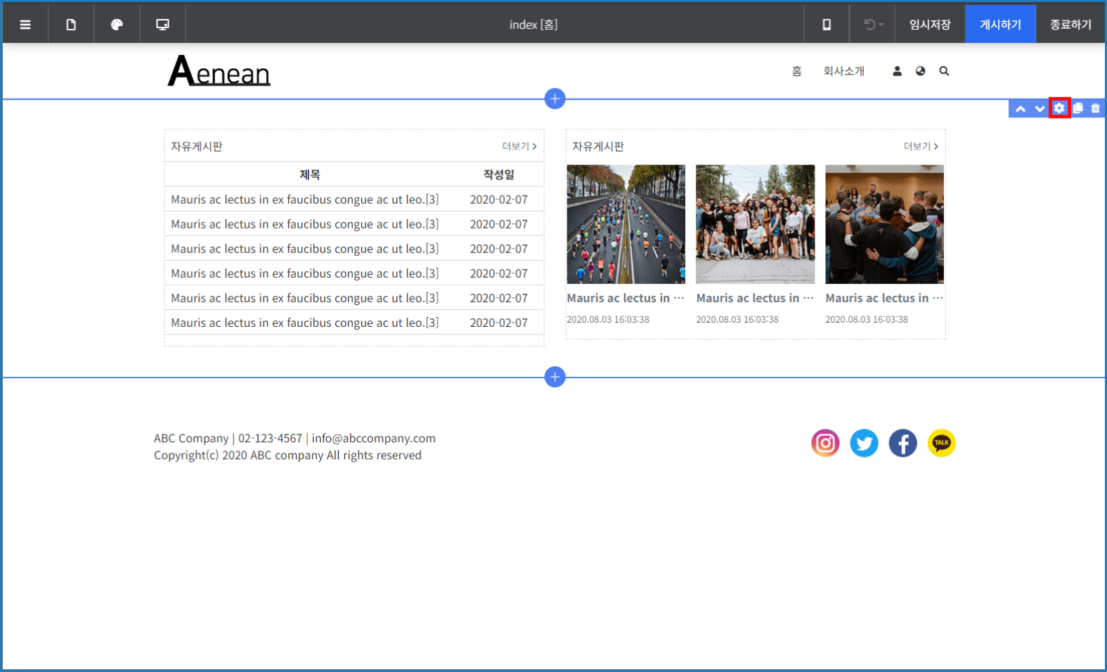 하나의 게시판만 표시 가능한 게시판 블럭과 달리 여러 게시판을 각각 연동하여 여러 게시판의 최신글 목록을 표시할 수 있습니다.