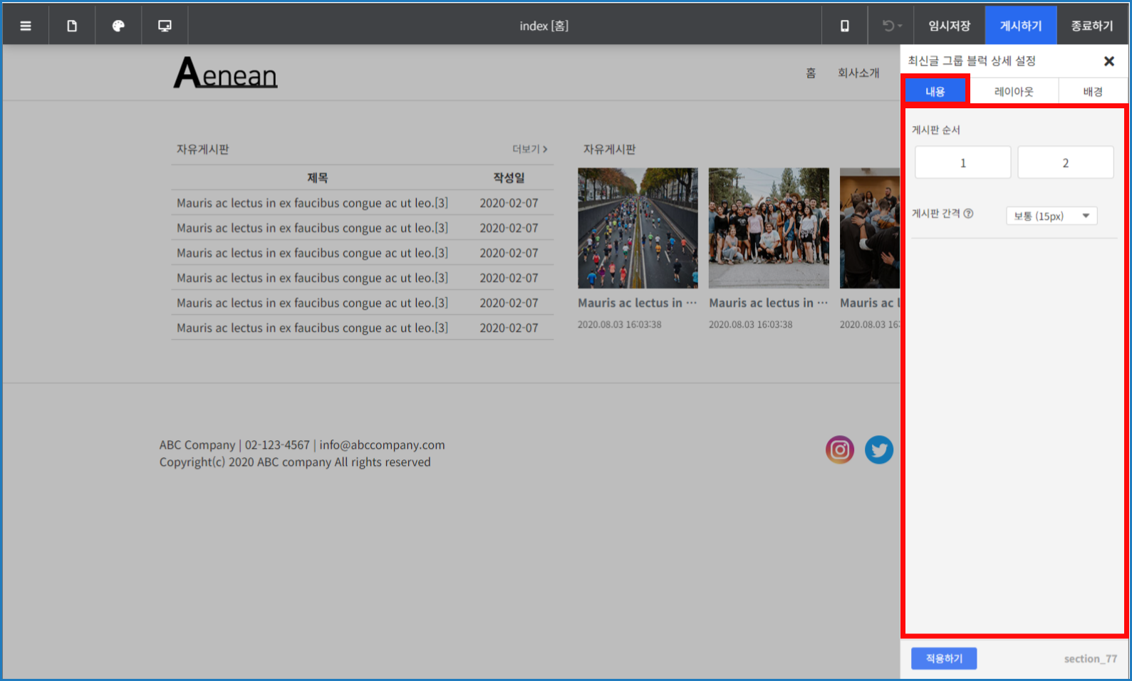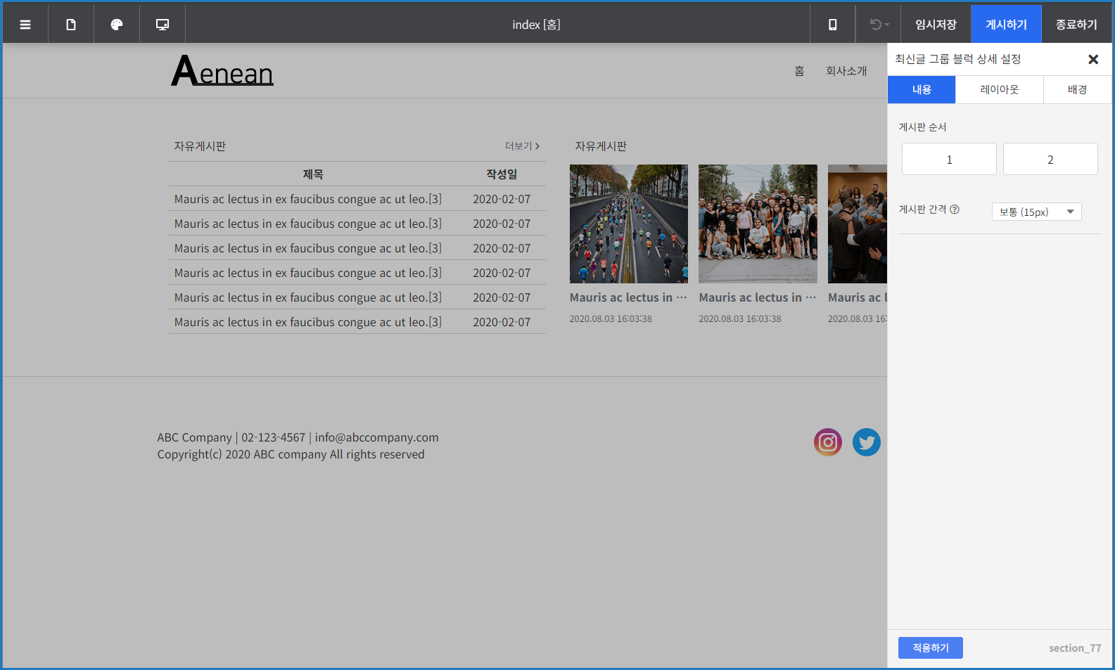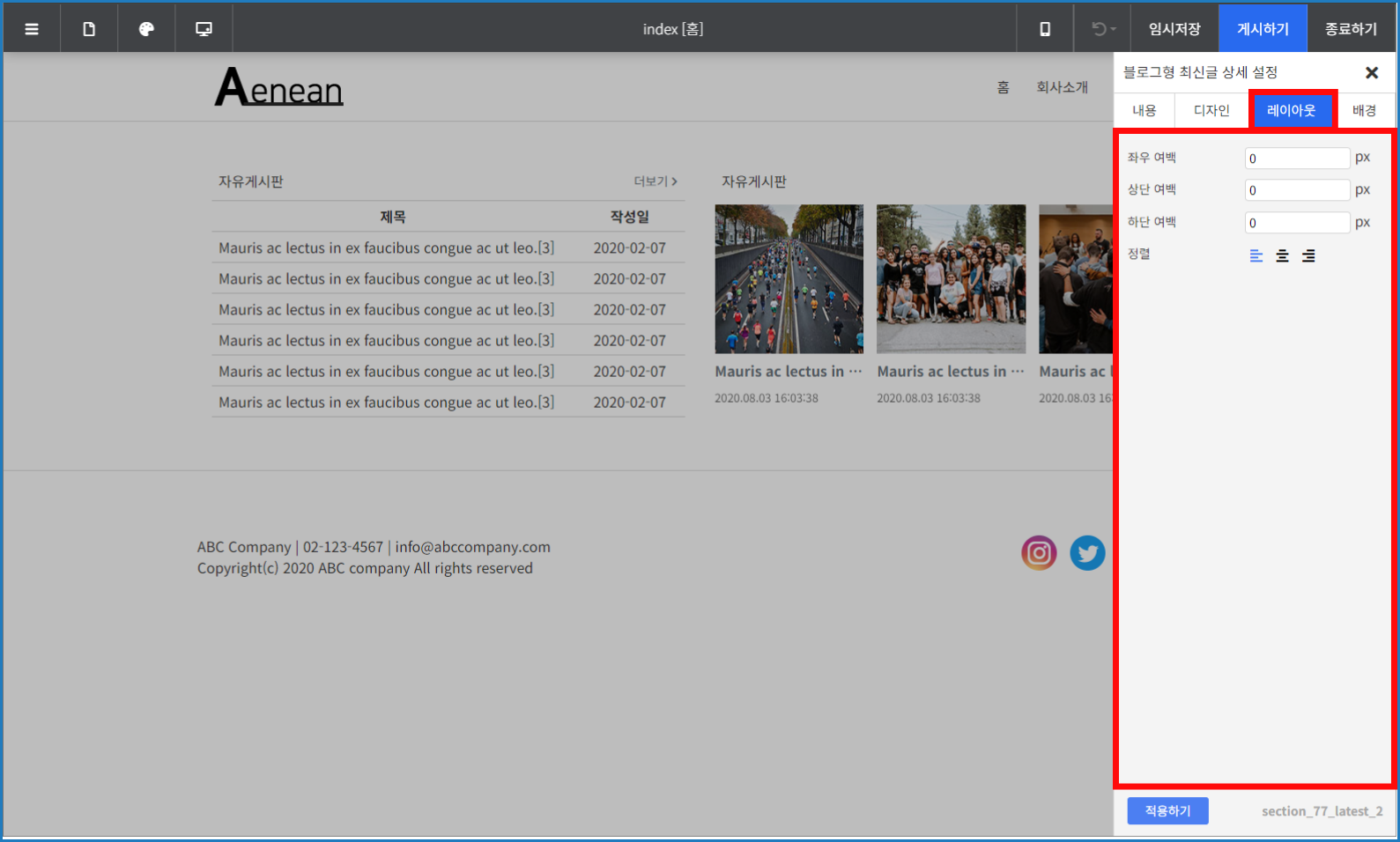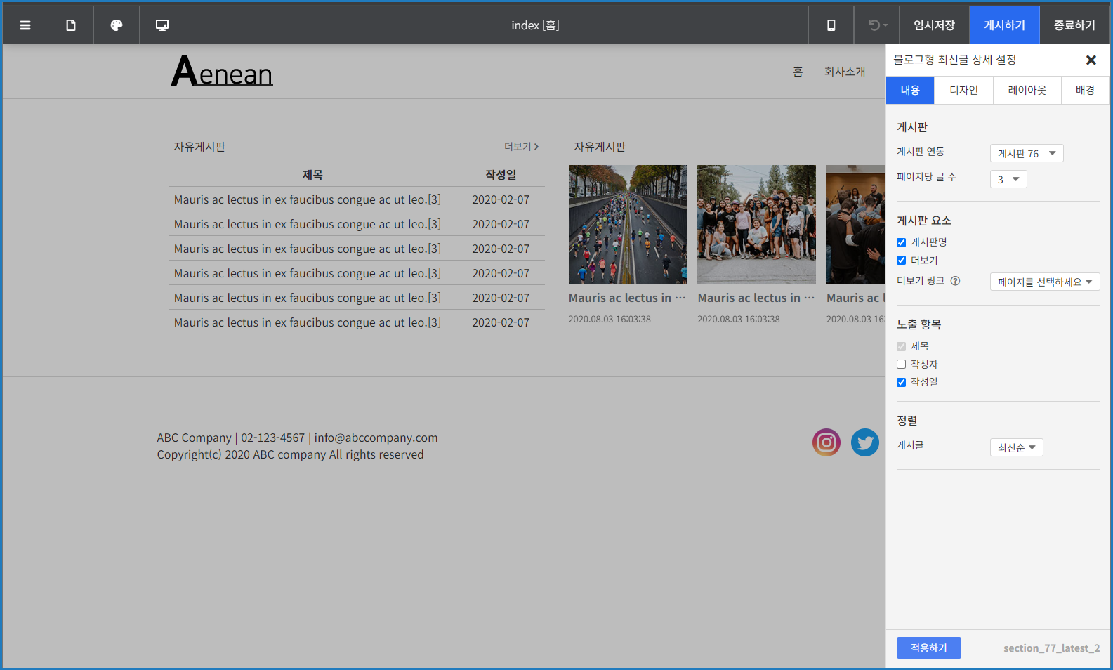 [최신글 상세설정 - 레이아웃 설정 화면]