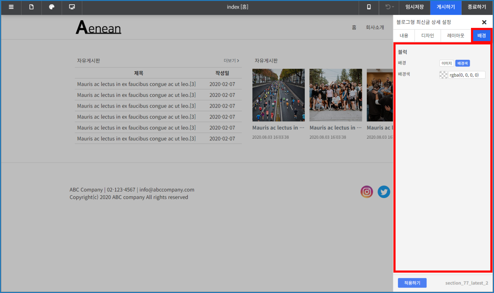 해당 최신글 영역의 배경을 설정합니다. 색 또는 이미지로 설정할 수 있습니다.