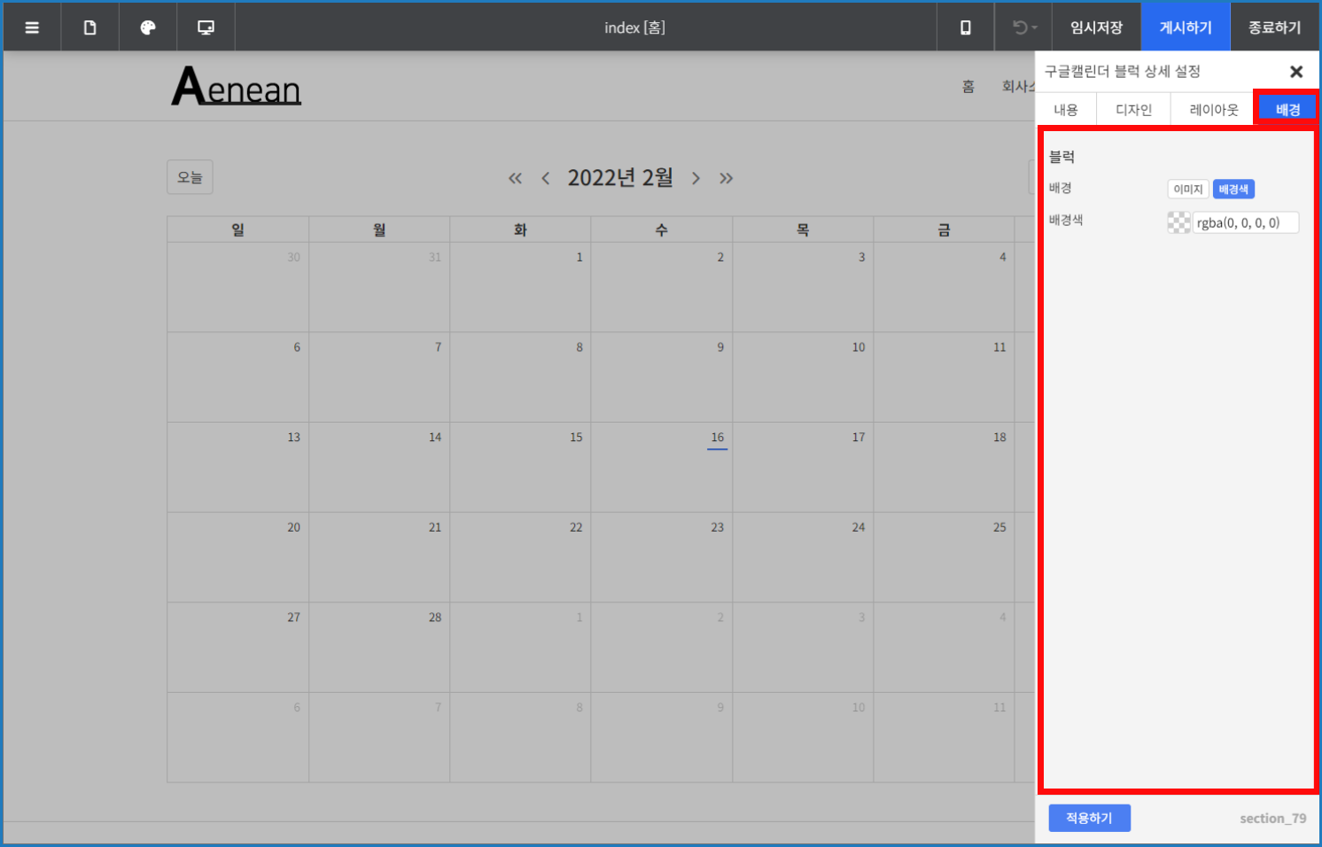 [구글 캘린더 블럭 상세설정 - 배경 설정 화면]
