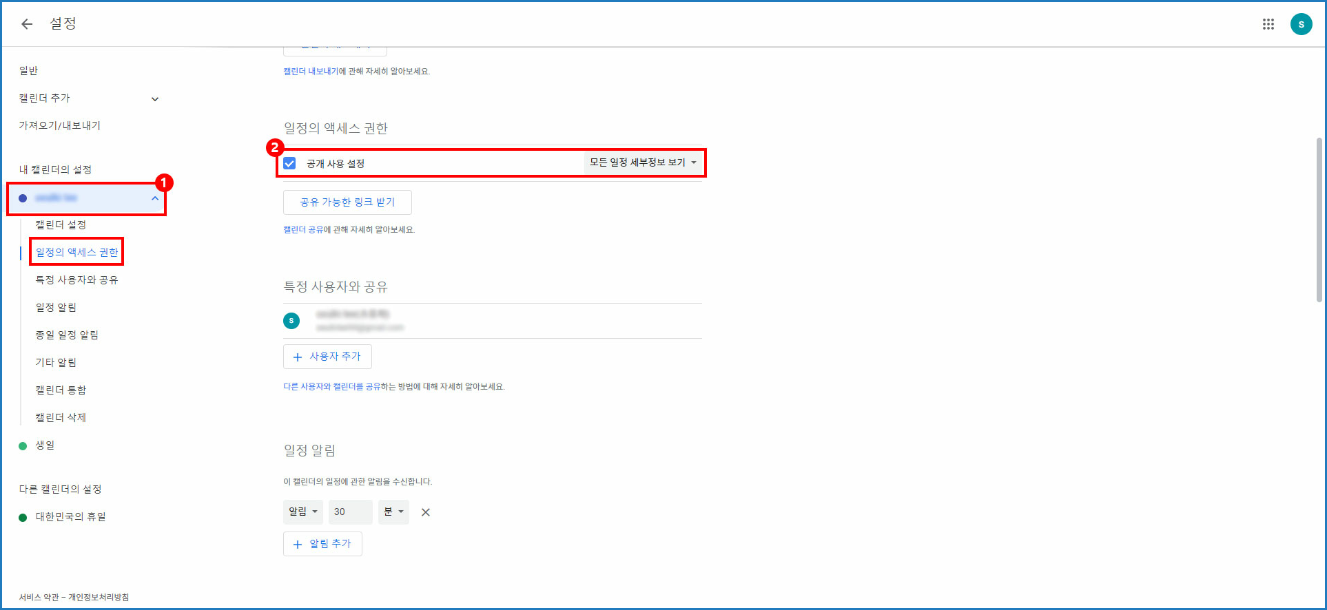 구글 캘린더는 구글 API를 연결하여 사용해야 하기 때문에 연결을 한 번 더 확인하는 항목입니다. 자세한 사항은 메뉴얼 하단을 참고해주세요. |