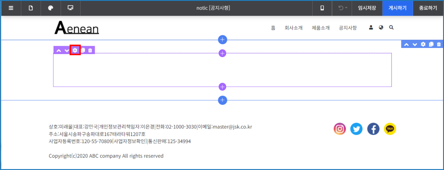 여백 블럭 위에 마우스를 올리면 좌측 상단에 블럭 편집 메뉴가 표시됩니다.