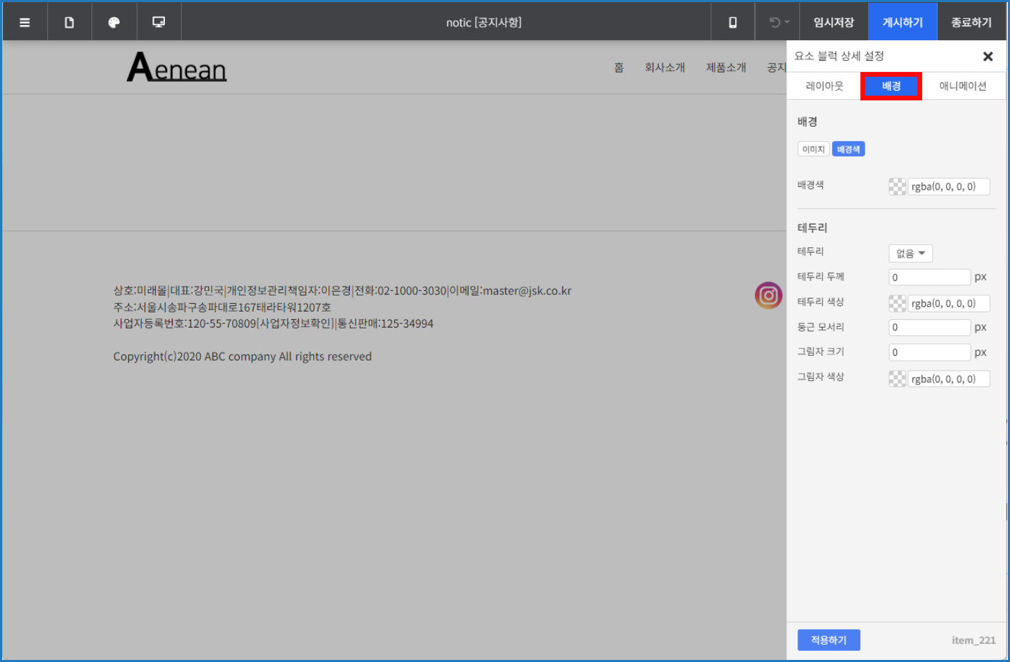 | 배경 | 블럭에 대한 배경을 설정합니다. |