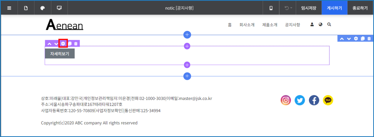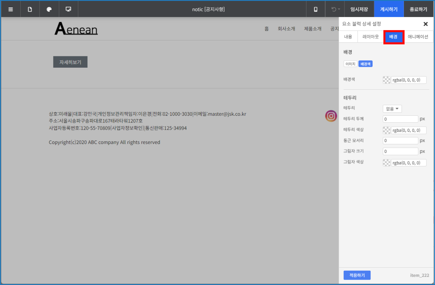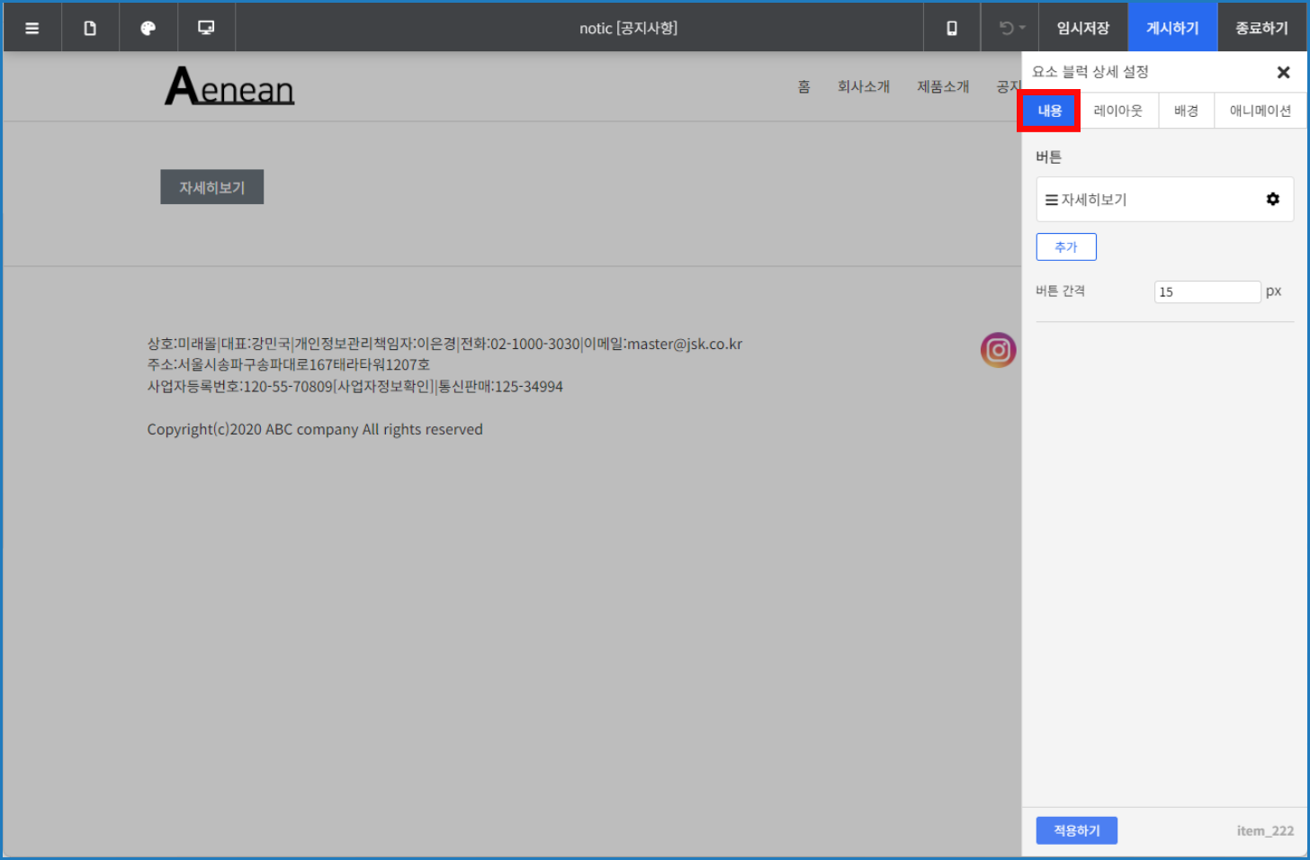블럭 상세 설정창 하단의 적용하기 버튼을 눌러주어야 최종 적용됩니다.