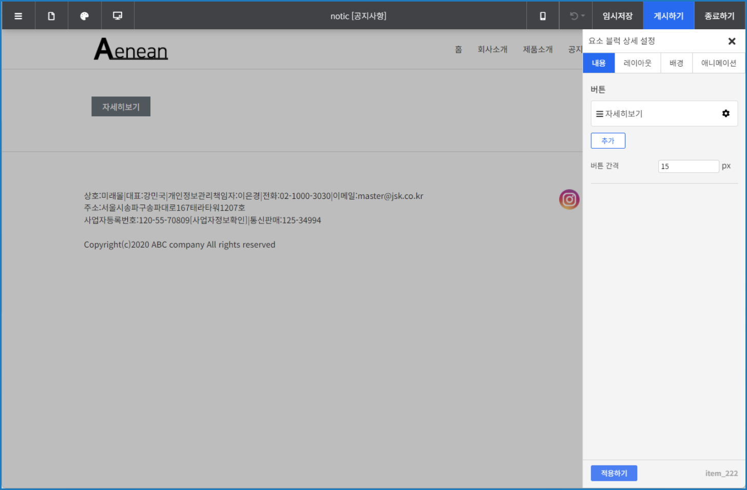 [버튼 요소블럭 상세설정 - 레이아웃]