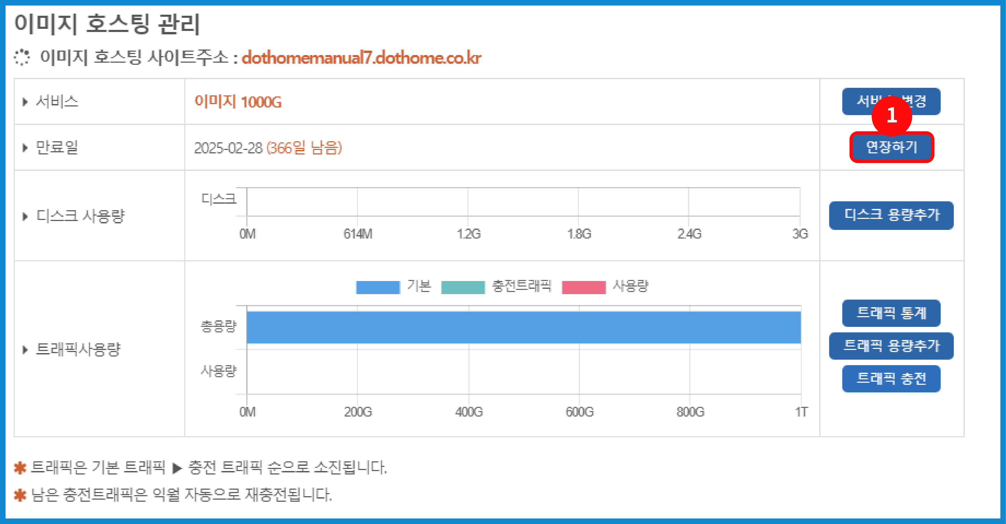 이미지호스팅 서비스 기간 연장 방법 안내입니다.