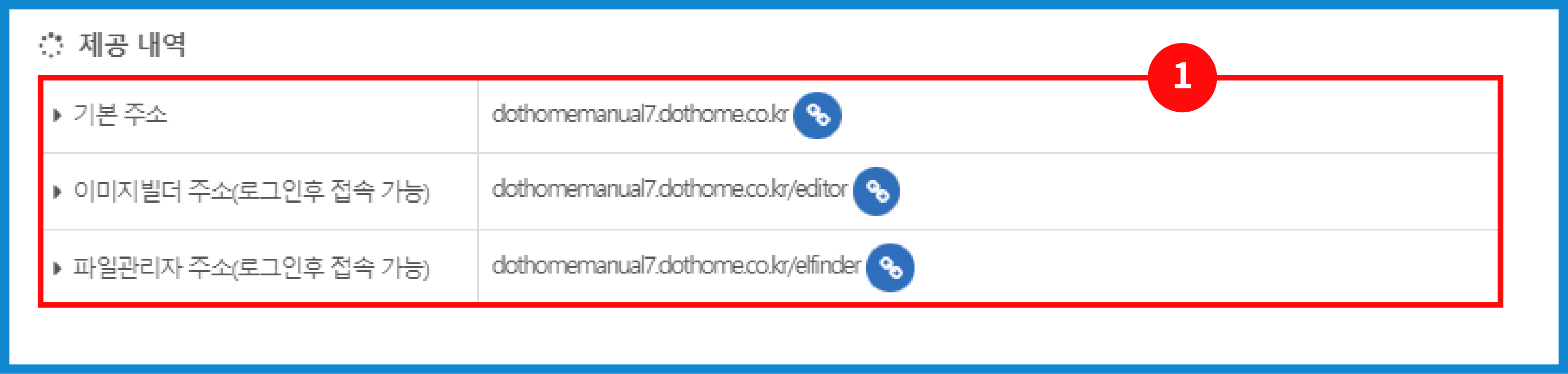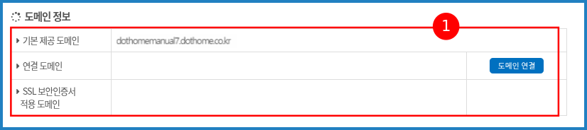 | 기본 제공 도메인 | 닷홈에서 제공한 기본 도메인을 보여줍니다. |