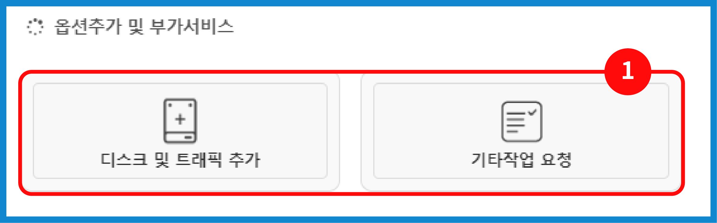 * 옵션추가 및 부가서비스 : 디스크 및 트래픽을 추가 또는 타업체 SSL 설치 등 기타서비스 신청