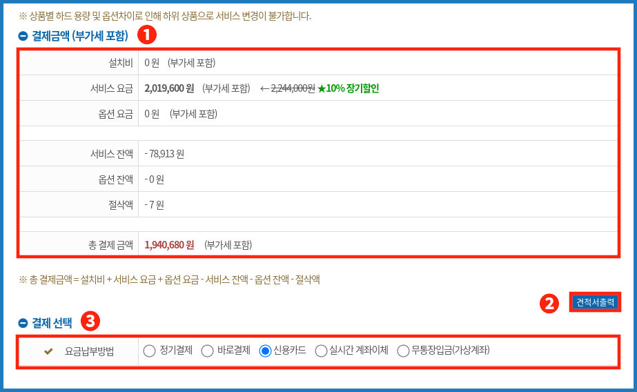 | 설치비 | 서비스를 설치 비용을 표시합니다. |