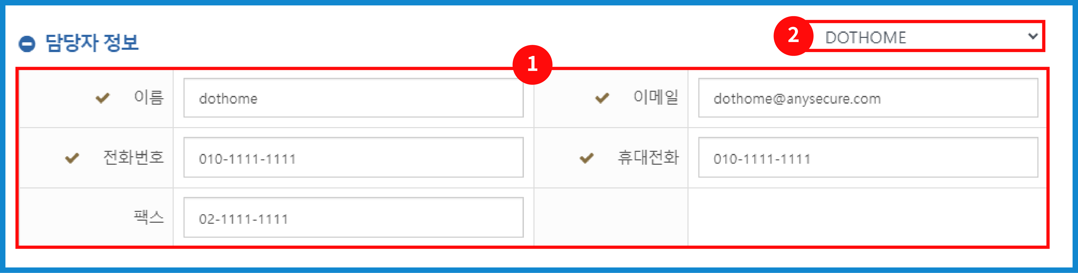 마이닷홈에서 등록해 놓은 담당자 정보가 있다면 선택하여 정보를 자동 입력합니다.