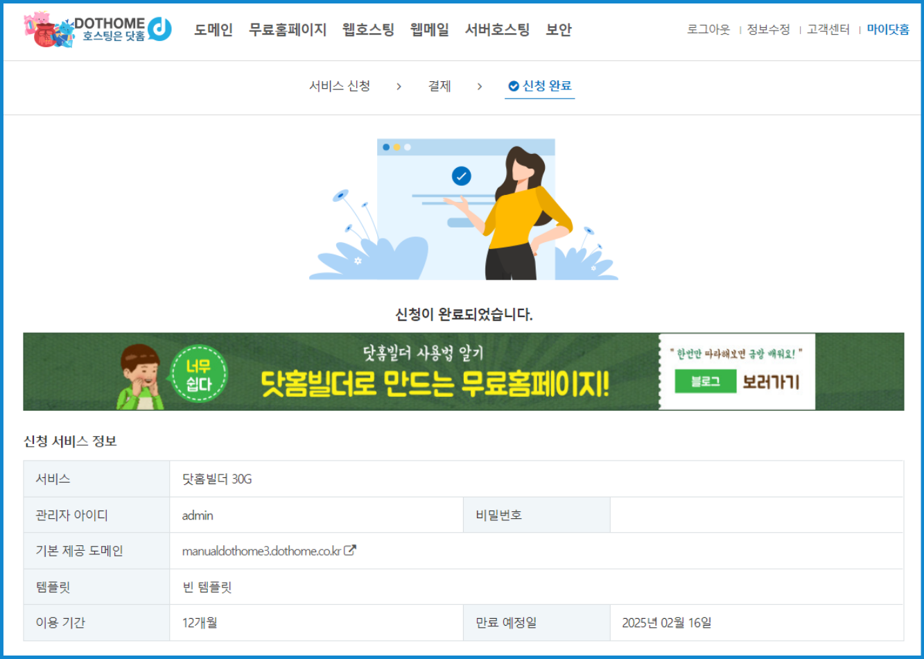 (템플릿은 신청후 마이닷홈에서 변경이 가능합니다.)