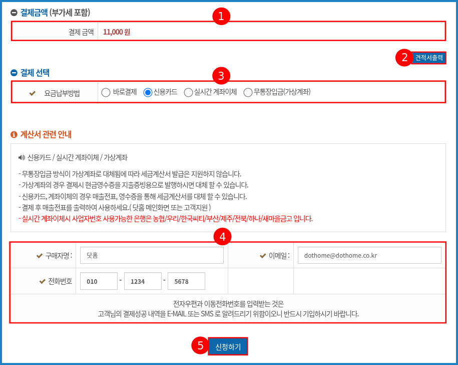 ④ 구매자 정보 (계산서 관련 안내 아래 입력폼)