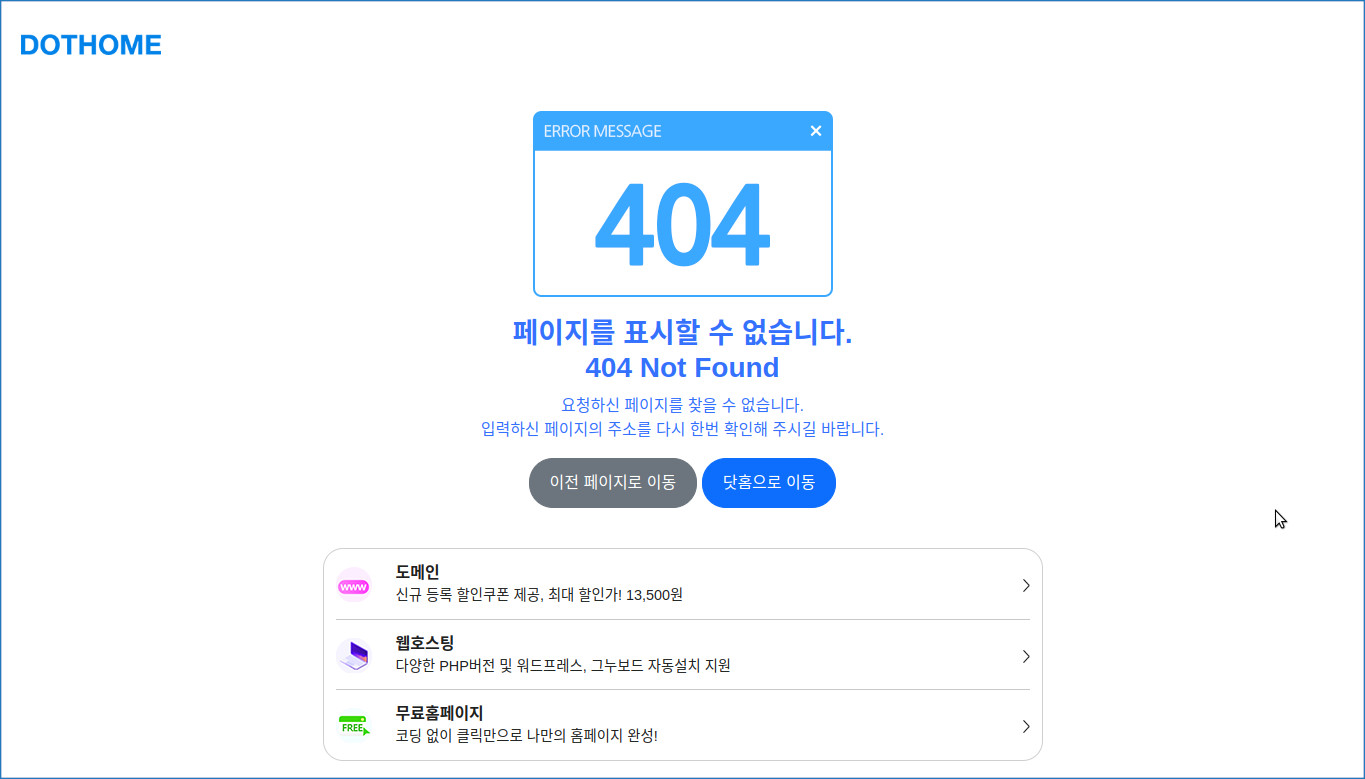 [웹호스팅 닷홈 404 페이지 출력 화면]