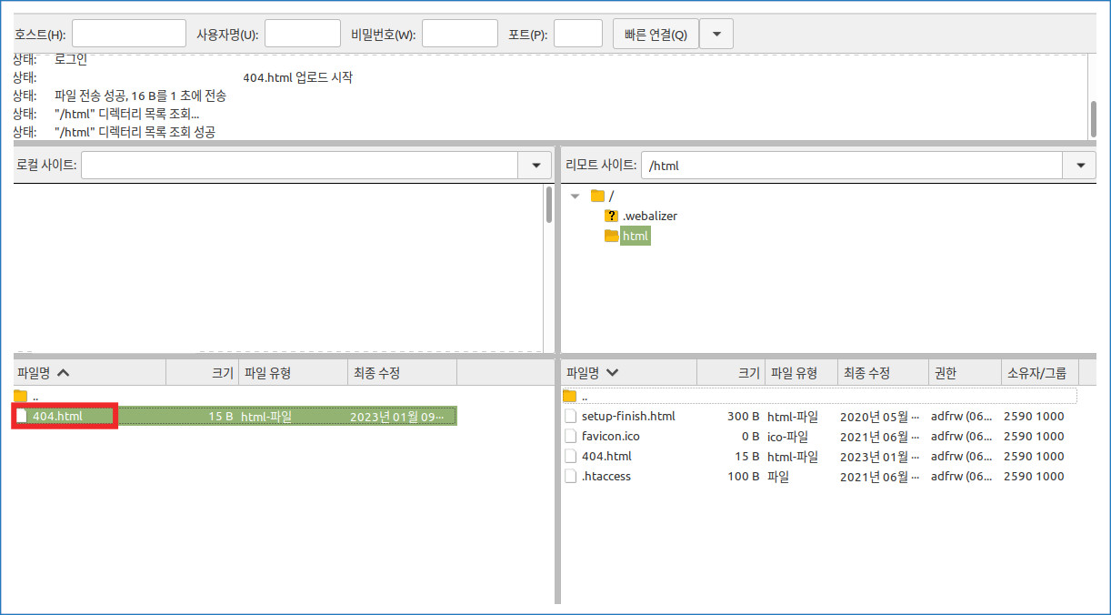 1. FTP로 접속하여 html 폴더 안에 에러 페이지 이미지 또는 html 파일을 업로드해 주세요.