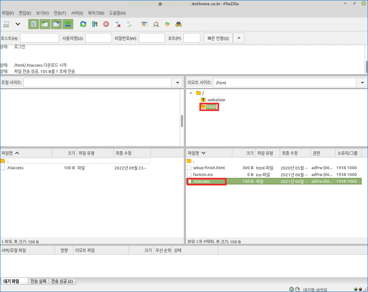 2. FTP로 접속하여 html 폴더 안에 .htaccess 파일이 있는지 확인 후 .htaccess 파일을 다운로드를 받아주세요.