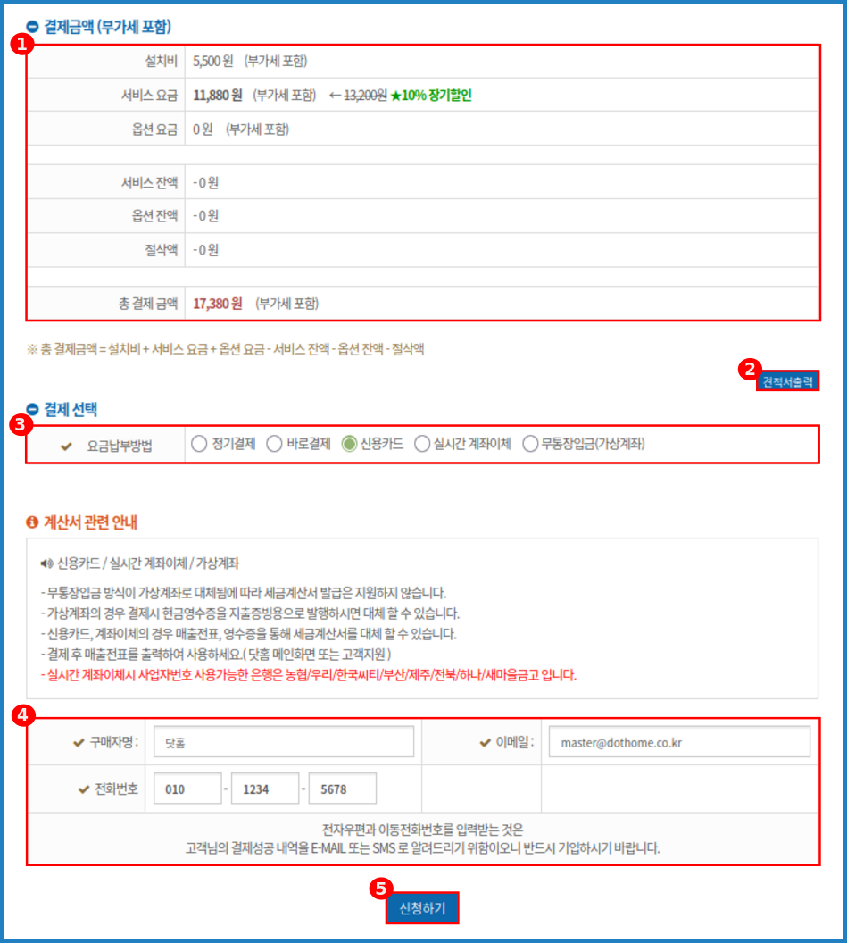 정보 입력을 마쳤다면 ⑤ [신청하기] 버튼을 눌러줍니다.