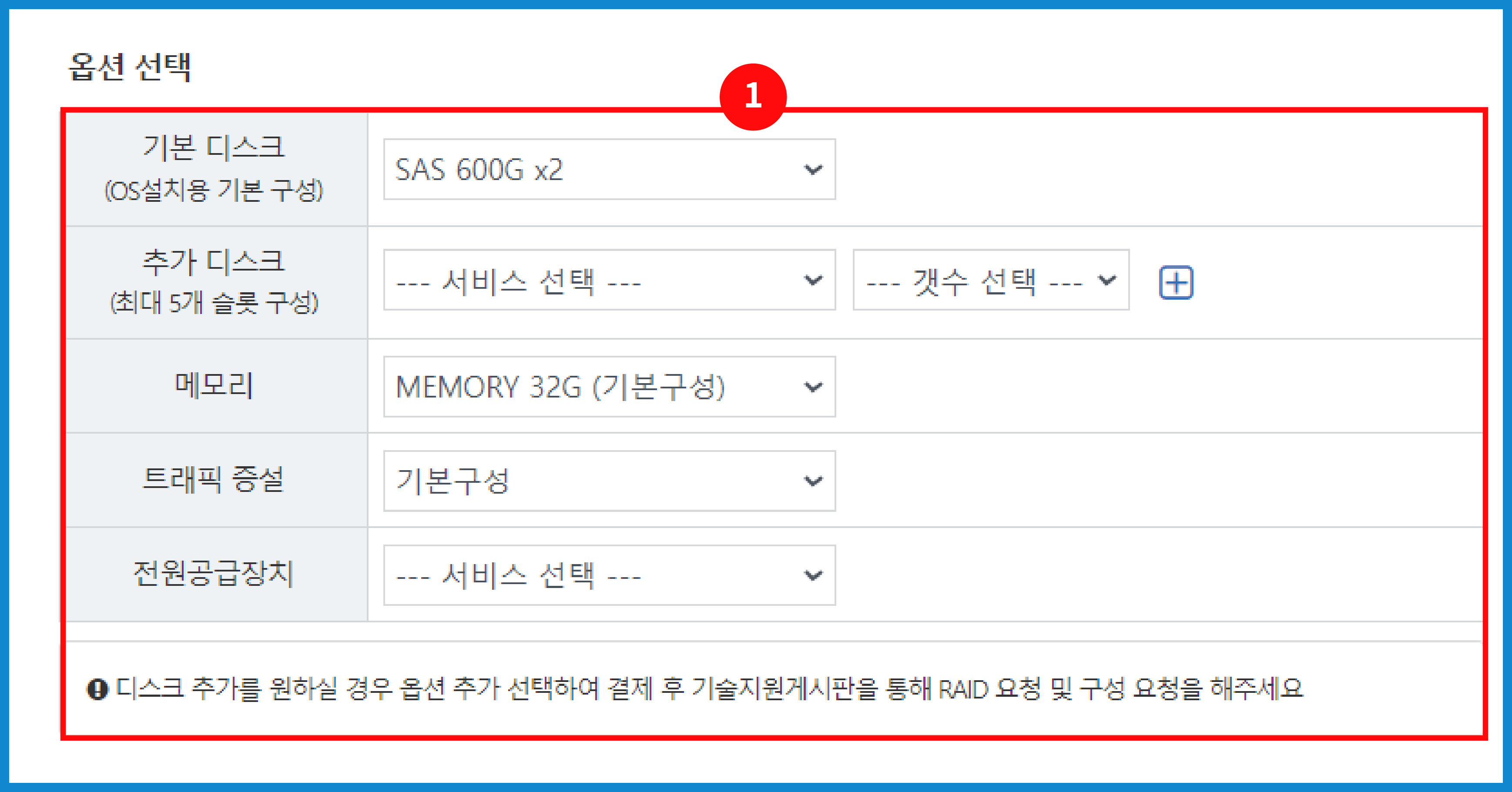 | 트래픽 증설 | 트래 옵션을 기본 구성 보다 높은 사양으로 변경할 수 있습니다. |