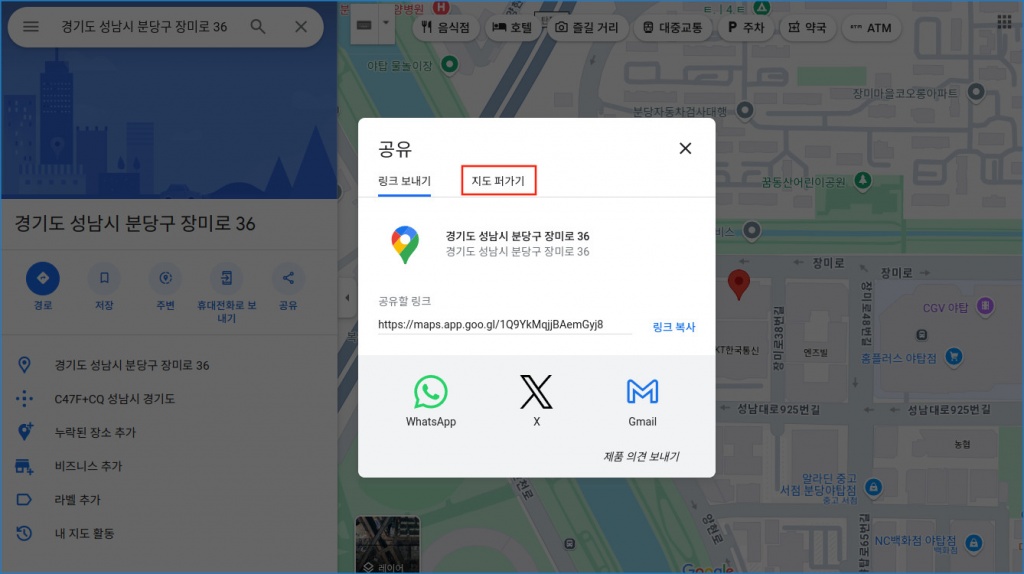 [구글지도 홈페이지 공유 버튼]
