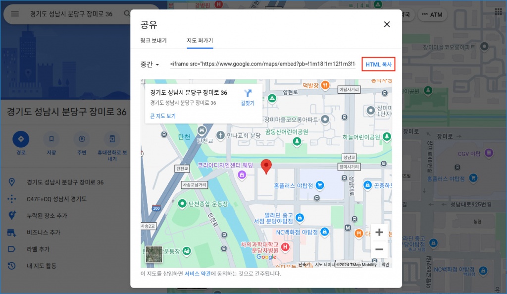 [구글지도 홈페이지 HTML 복사 버튼]