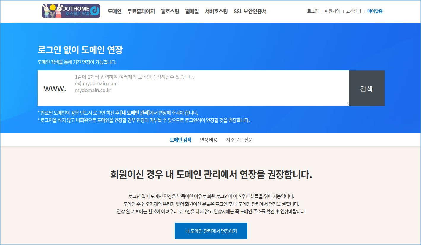 [로그인 없이 도메인 연장 페이지]